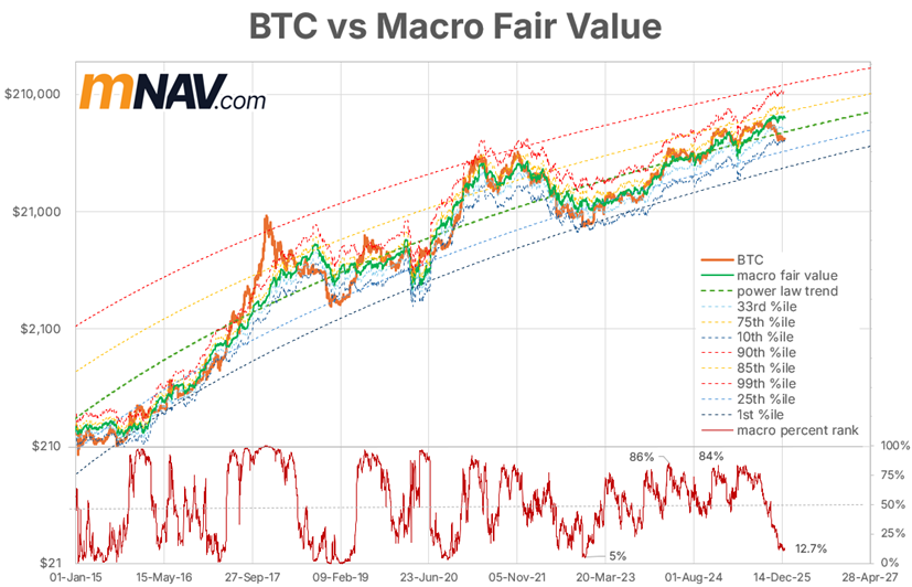 The good news for Bitcoin investors right now is that the price is lagging well below the current macro fair value. Possible reasons for this include: