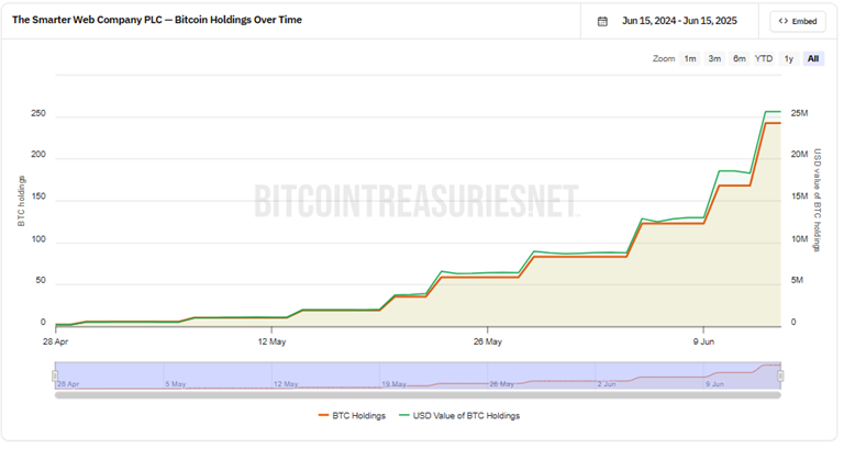 Webley has stated in several interviews that he and Tyler Evans (UTXO) aimed to reach 1000 BTC faster than MetaPlanet. They’re certainly on track to achieve 1000 BTC in record pace, but it will be interesting to see what happens after that. At the current rate, they’re on track to hit 1000 BTC by 28 June 2025 (yes, that’s only a week from now).