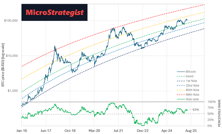 Currently, BTC is positioned comfortably at the 63rd percentile, well away from the overleveraged FOMO zone. But by the time BTC reaches the 99th percentile, there’s a good chance that there will be plenty of overleveraged BTC treasury companies that will blow up if BTC pulls back suddenly.