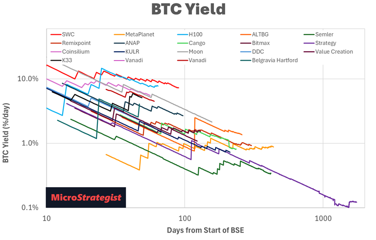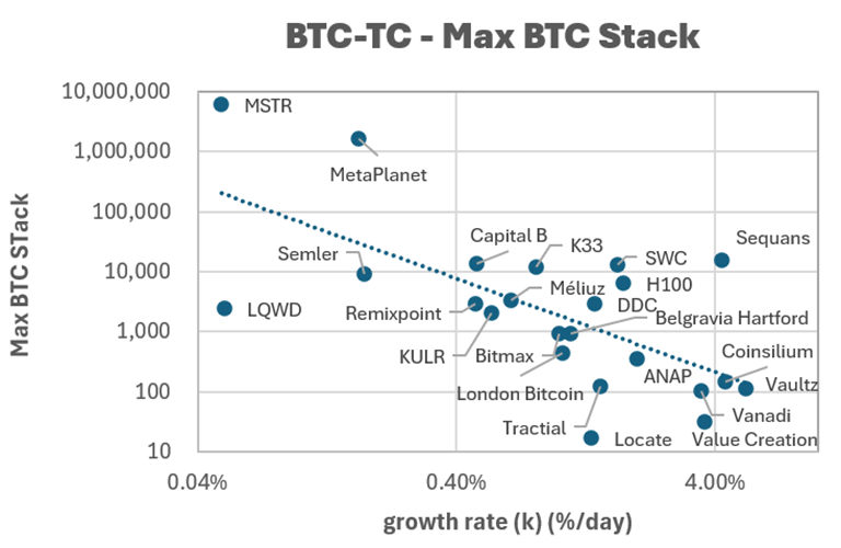 That’s why I believe modelling the shape of a company’s BTC accumulation curve is critical. It helps us determine whether a company is losing momentum or just getting started — and what that might mean for its future price action.