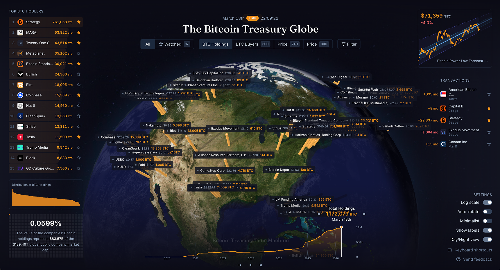 The Bitcoin Treasury Globe lets you see that movement unfold in real time.