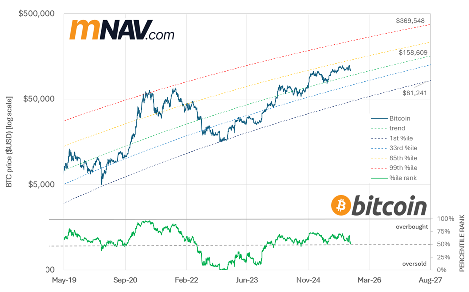 · Current fair value: Based on this latest regression, Bitcoin’s implied fair value is around $146 K — roughly 36 % above current prices.