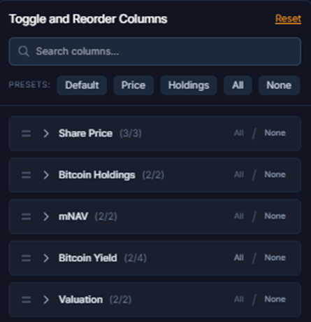 These filters make it easier to navigate a rapidly expanding universe of BTC treasury firms.